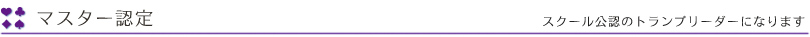 | 1日間 約5時間 | 価格は各講座スケジュールを参照 | マスター認定を受けた方 | 実践基礎トランプ講座を開講する上で、必要な知識や ワーク手法を学びます。 |